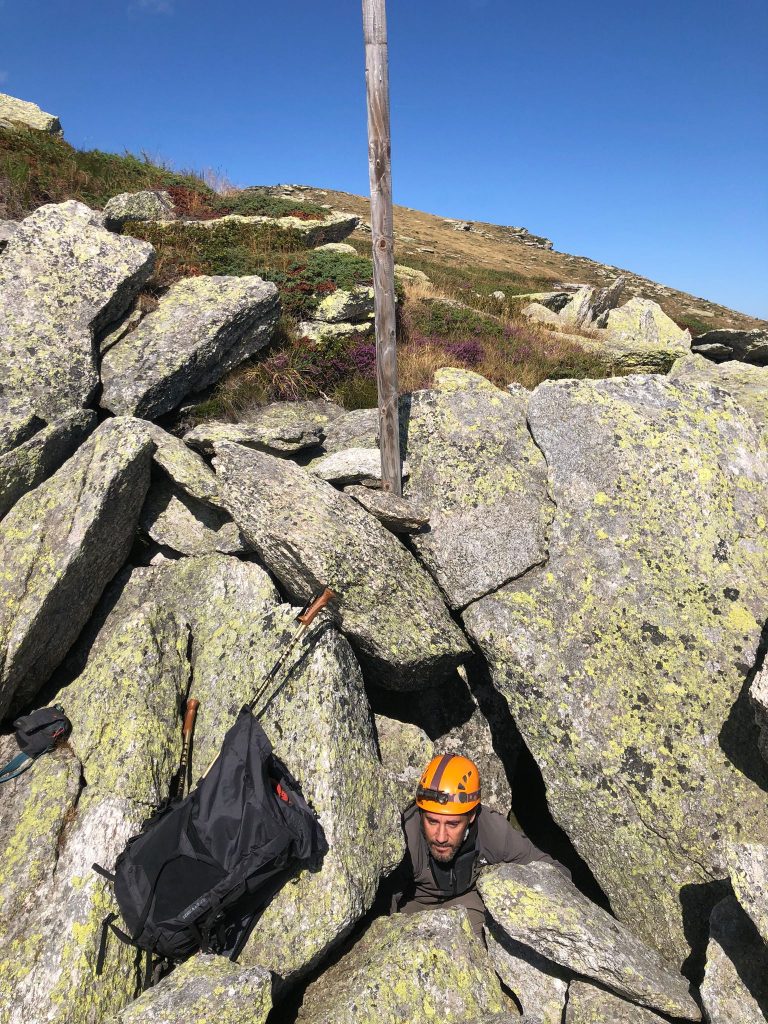 Marco Isaia during field work for collecting Troglohyphantes spiders