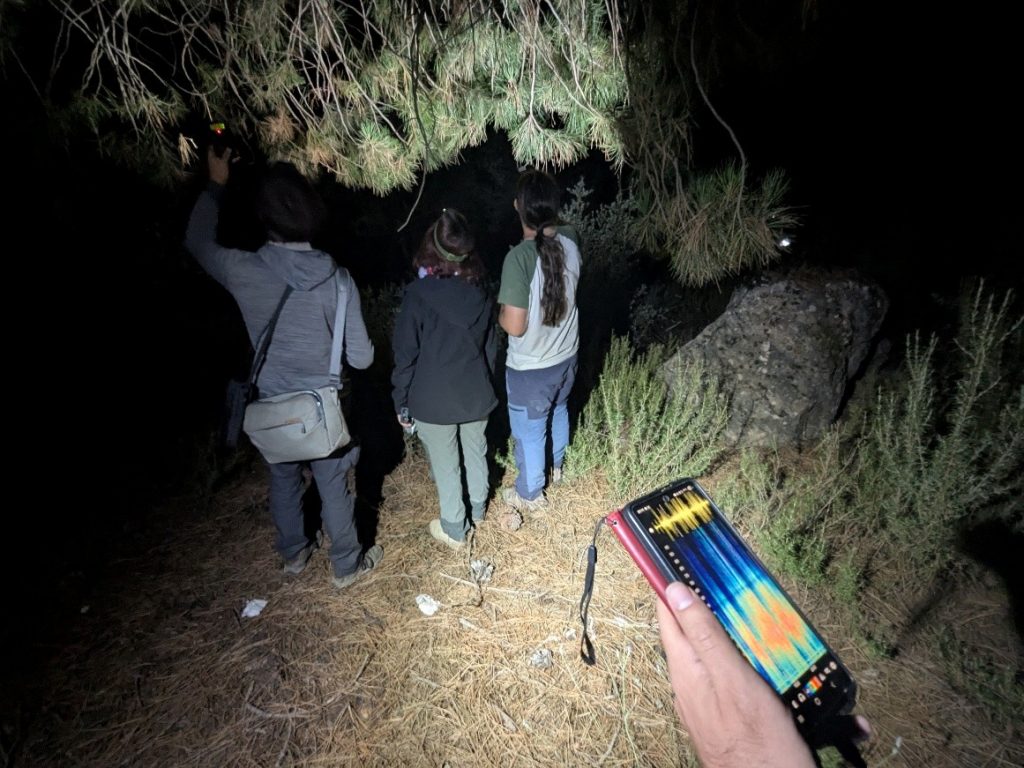 Nighttime surveys using ultrasound detectors revealed the presence of Canariola emarginata, a species whose calls are inaudible to the human ear and whose occurrence in Sierra Nevada had been rarely documented.
